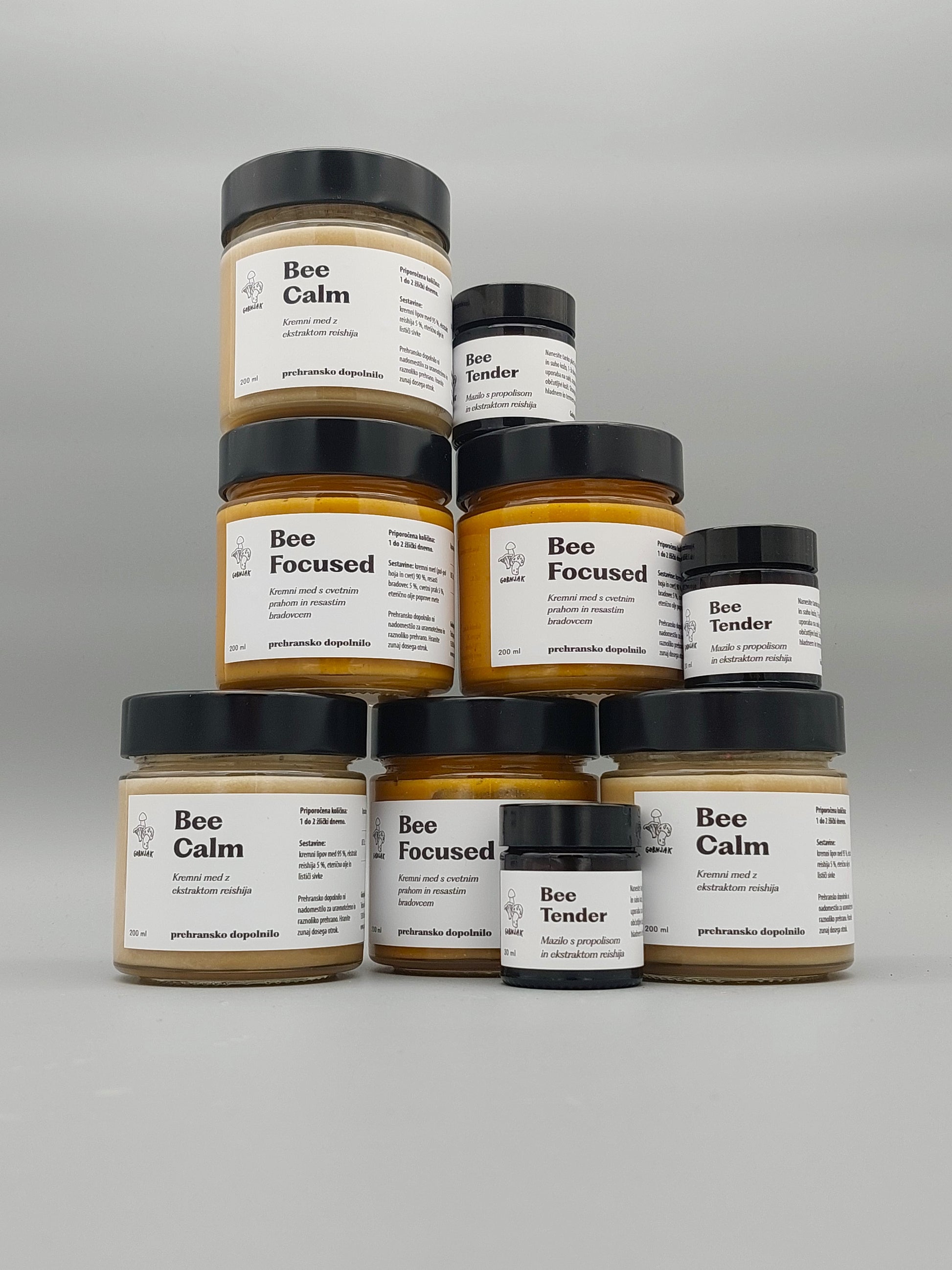 BEE CALM je rojen v ritmu Kočevskih gozdov – tam, kjer čebele nabirajo čisto medeno esenco, reishi pa kot starodavna “goba dolgoživosti” raste v tihem objemu narave. V tej sinergiji čebeljih pridelkov in adaptogene moči reishija nastane izdelek, ki pomirja, krepi in vrača ravnovesje. Ustvarili smo ga z mislijo na varnost, čistost in sledljivost vsake sestavine, saj želimo, da lahko njegove blagodejne učinke uživajo tudi najmlajši – tisti, ki bodo nekoč nosili svet naprej. BEE CALM je droben, nežen most med znanostjo, tradicijo in lokalnimi partnerji; varno pristanišče naravnih živil, ki otrokom in odraslim podarja okus miru ter zaupanja v vse, kar je pristno.